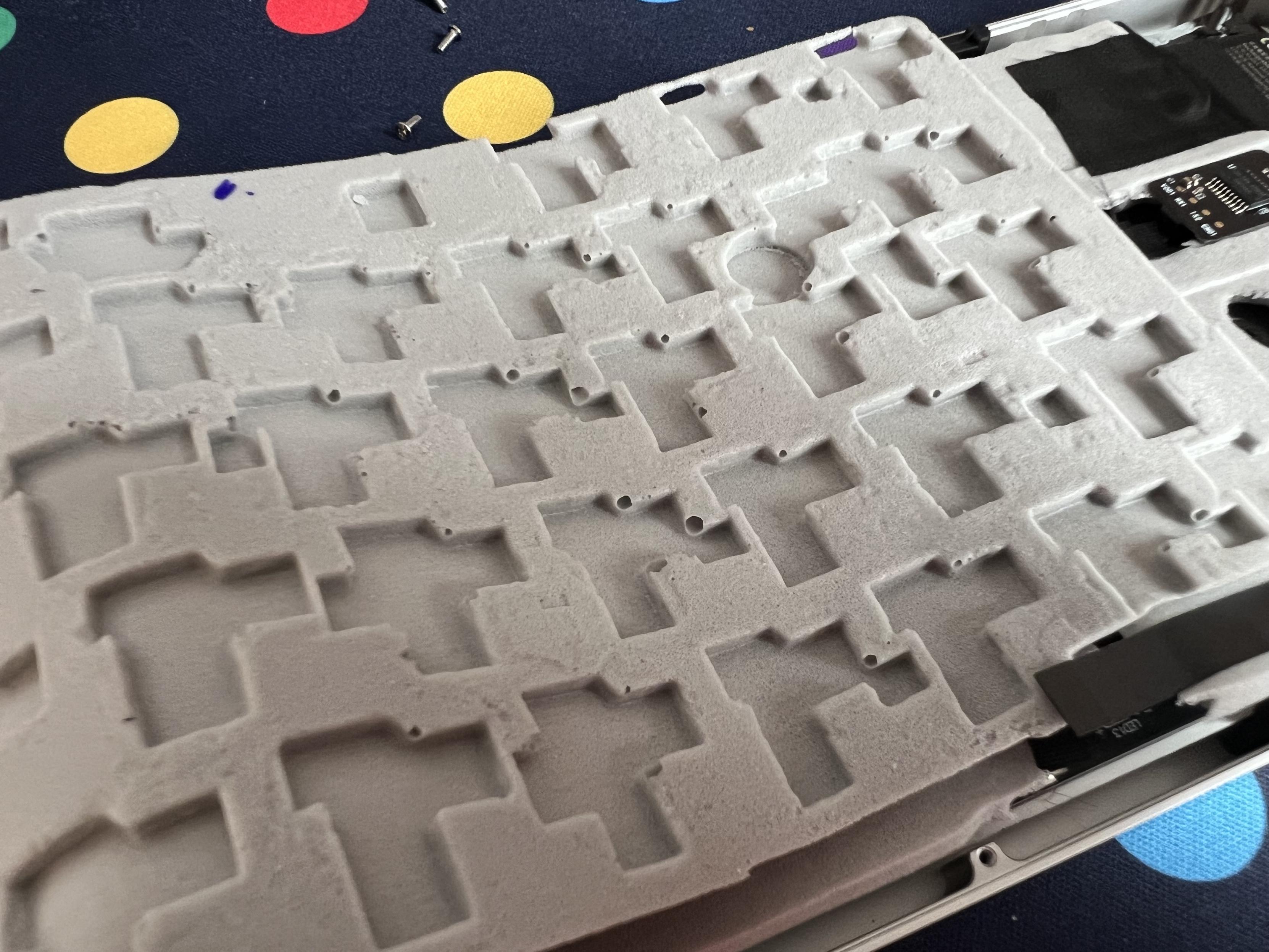 I did manage to get a peek under the foam, revealing a straight forward black PCB, and the bizarre, 3D moulding of the foam itself.
