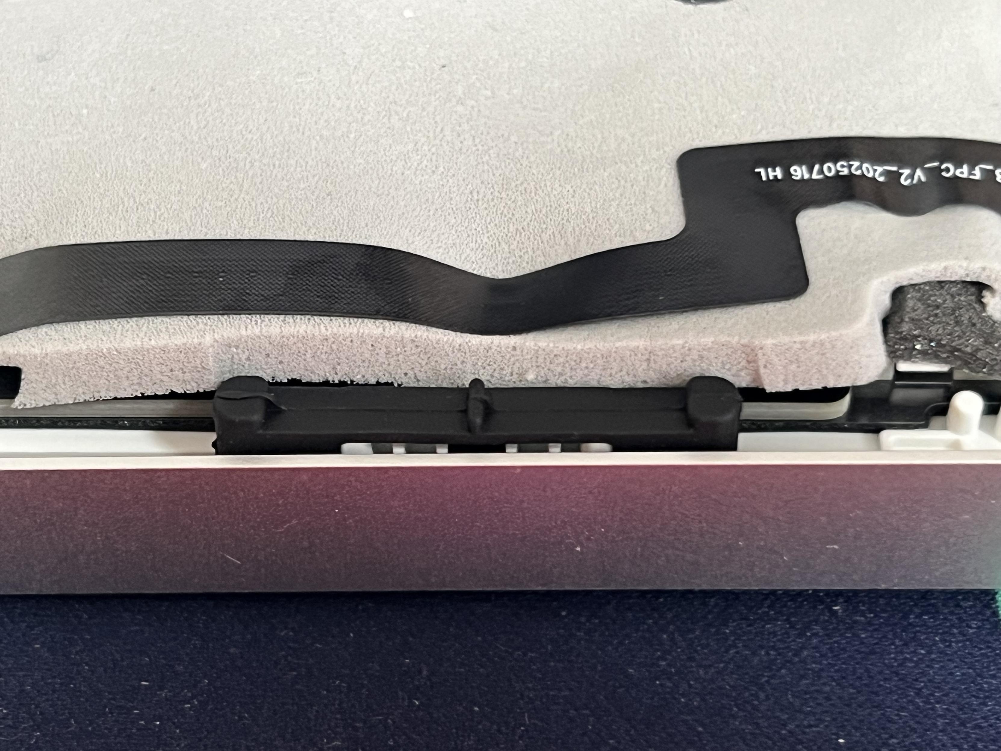 Despite the easily accessible screws, prying the keyboard apart is particularly difficult since the foam underneath the PCB does not want to let go of the aluminium bottom. A careful effort to pry them apart was successful, but the board – with its carefully routed, laptop-like flat flex cables from the USB port and touch sensor – quickly put a stop to any further disassembly.