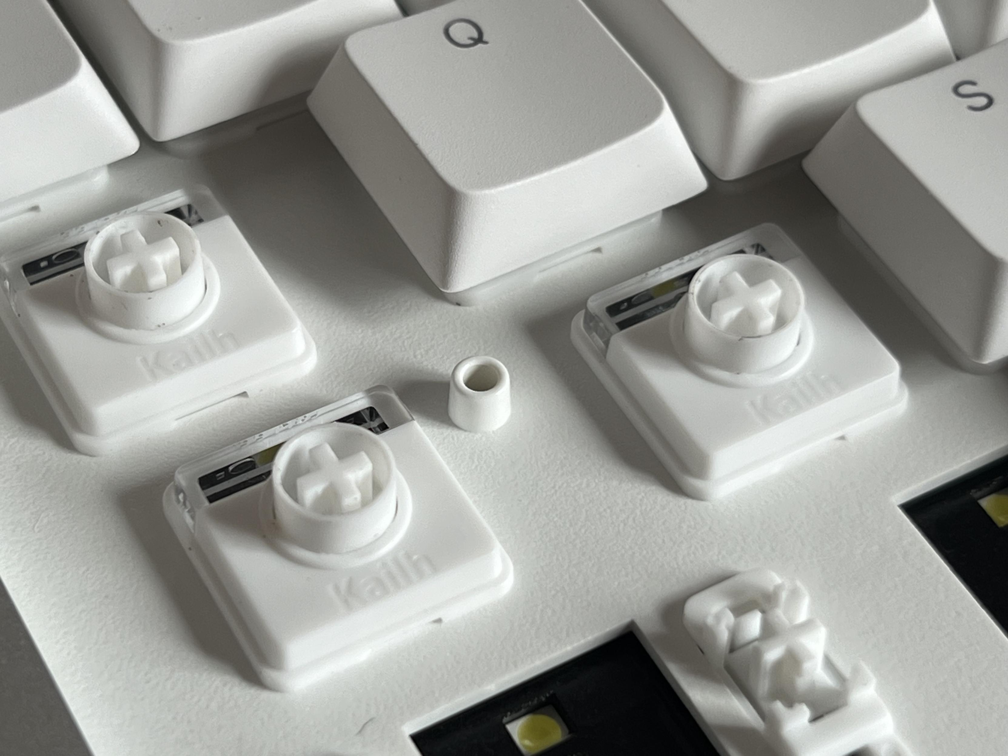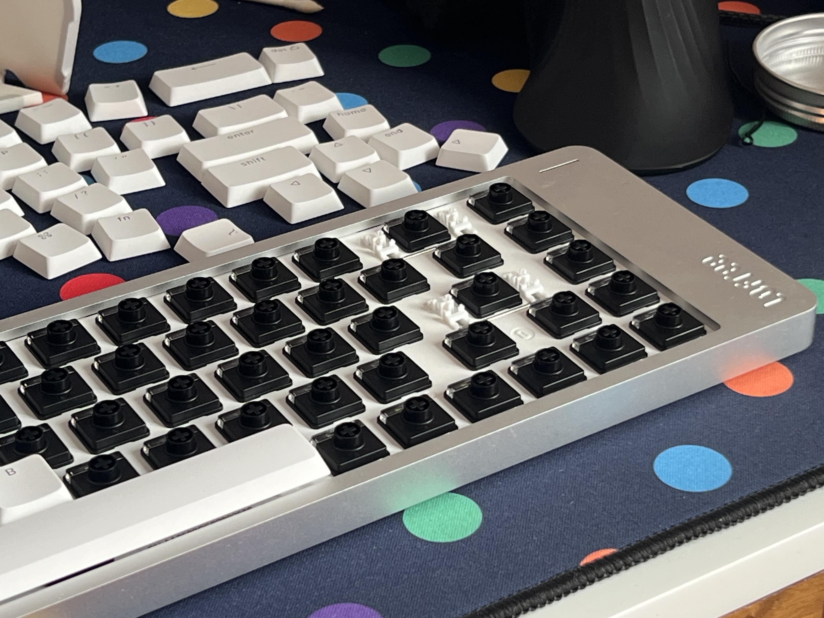 A full switch swap takes some effort, but it’s doable. These are the Lofree “Pulse” tactile Kailh switches, installed into a Flow 2 68.